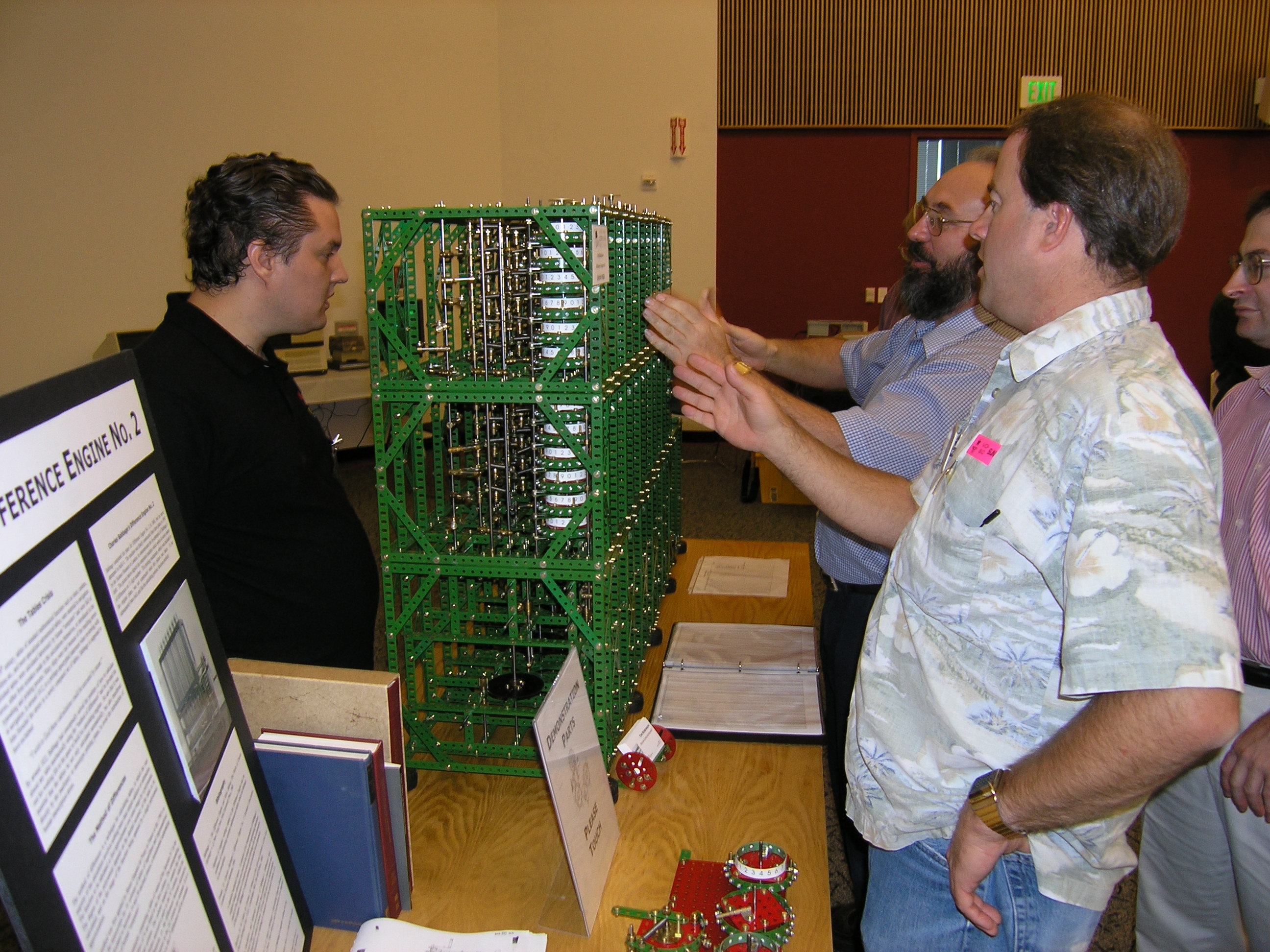 2/17/2010Gave a talk on Magic-1 at the San Francisco ACM chapter meeting. Fun stuff - it was held on the old Oak Room at HP (the same room I got my HP new employee orientation in 25 years ago). Lots of interested folks and good questions. 6/4/2009Had a great time at the 2009 Maker Faire - spent two full days on my feet talking continually. My table was next to Steve Chamberlin's great BMOW project, and I was happy to finally meet Steve and check out BMOW. Here's a picture of my setup just before the show opened: This was the fourth time I've displayed Magic-1 at a public show, and I continue to be surprised at the number of people who have heard of the project and understand what it's all about. You can also see one of my Nixie tube clocks and a dekatron spinner on the table. Those drew considerable interest from the crowd as well. All-in-all, a fun weekend capped off with a Maker Faire Editor's Choice award. I was too busy to take many pictures, but the folks from IDG News Service (part of the PC World magazine organization) did a video interview and published it on the web: I haven't made any significant changes to Magic-1 in quite a while. It's pretty much complete now. About the only thing left for me to do is release all of the sofware I've written for it as open source. I just need to find some time to review all of the other open source code I've incorporated into the project to make sure I'm respecting their licenses. After that, I'll push everything into the open - including the build environment in case anyone wants to compile and run their own programs on Magic-1. 2/1/2009WooHoo! - Found and fixed a long-standing bug today. About two months ago I was making some minor changes to the kernel makefile and discovered that if I rearranged the link order the kernel would hang during boot-up. I suspected a linker bug in bss fixups, but after lots of debugging convinced myself that the linker was ok. Kernel hangs can be very difficult to debug - especially during the boot process, so I simply reverted to the older makefile and hoped I would eventually run into a more clear-cut (and easier to debug) failure. That failure showed up after a minor change Friday night. Instead of hanging, the kernel aborted with an unexpected trap - and I could consistently reproduce it. It took most of the weekend to narrow it down, but I finally tracked the problem down to a mistake I made about 2 years ago when allocating kernel task stacks. One of the tasks stacks overlapped a temp disk buffer that was only used during boot-up. That's why there was never a problem once the system was fully booted up. 12/28/2008Although I've been quite busy with the new job (I'm on Google's Android team - working on the Dalvik VM), I continue to fiddle with Magic-1 from time to time. Over the Christmas break I did quite a bit - mostly performance tuning and recovering from a failed hard drive (one of my 1994 20MB HP Kittyhawk drives). A few years ago I got a handful of Kittyhawks, but I've been losing them at the rate of one every six months or so. For that reason, I've decided to just use a Compact Flash drive for day-to-day operations. On the performance tuning front I added some features to the kernel to profile system tasks as well as user programs. The good news, I guess, is that there isn't much more performance to get without replacing LCC with an optimizing compiler. I was able to get some noticable speedups by rewriting 16x16 multiplication and 32-bit shifts (which mostly affected floating point speed). I also hand-coded some assembly replacements for key portions of the IDE hard drive driver. I've been toying with the idea of writing a Magic-1 target for the LLVM optimizing compiler framework. Done properly, that could give a pretty dramatic speedup - and I've been wanting an excuse to play with LLVM. Perhaps later. Today I decided to clean up one of the grungier bits of Magic-1: the boot mechanism. Currently, to boot Minix I have to first boot into my original OS/Monitor, and then load the Minix kernel, servers and init processes. The ugly part of this is that to try out a new kernel or server component, I have to first transfer it to the old OS/Monitor filesystem. I need something like Linux's GRUB or Lilo, and a prerequisite for that is stripped-down, minimal standalone code that understands my modified version of the Minix FS. There is existing code for Minix which is close, but I also wanted it to work in a cross-development environment, so the code has to understand big/little endian issues. Also, my file system uses 2K blocks instead of Minix's 1K blocks. Anyway, the code seems to work. Next up - a simple boot command interpreter/shell. I'm back to work tommorow, but perhaps I can get this done over the New Year's break. It will be nice to have a flexible boot loader. 9/21/2008A little more than 24 years ago, I began my computer programming career in Hewlett-Packard's compiler lab in Cupertino, CA. I started off doing code generation for the then-new PA-RISC architecture, and over the years was lucky enough to get to dabble in Millicode (run-time support libraries written in assembly code), debuggers, dynamic translation systems, mechanisms to optimize programs while they ran and even participate in design of IA64 (Itanium). I left HP during the height of the dot-com craze to join Transmeta (which based it's x86-compatible microprocessor on dynamic translation). I returned to HP in 2002, ending up in HP Labs in Palo Alto (with my coolest title ever: Senior Research Scientist). My last day at HP was Friday, and I leave with lots of great memories. On Monday, I start at Google. I don't know the exact details of what I'll be doing there, but I can only assume that the bright folks there have realized that the future of massively powerful data centers belongs to wire-wrapped TTL. I'll be sure to bring my wire-wrap gun. 7/8/2008Heard from Aidil Jazmi, who built the fantastic clone of Magic-1 while a student 
