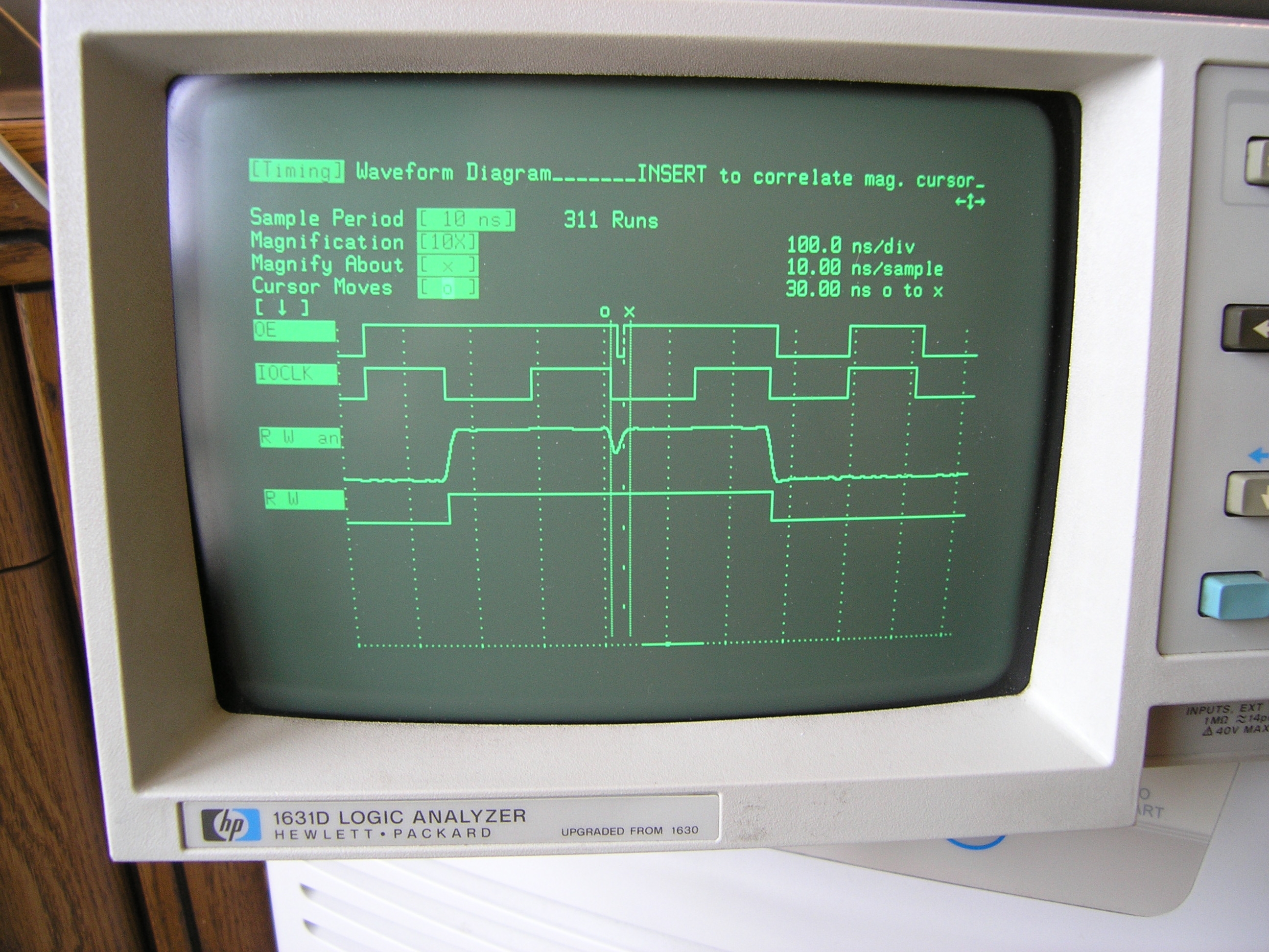What's new?Though the hardware for the project is complete, there's a lot of software left to do. And, I suppose I'll likely tweak the hardware a bit from time to time as well. I'll update things on this page. 3/29/2014We're approaching the 10-year anniversary of Magic-1 coming alive, which has prompted me to tune it up a bit. I replaced the 9-year-old power supply (which was failing) and reworked the mounting for the SD card drives. You can see pictures and details on my G+ stream. I've also been struggling to get the Wiznet device that I've mentioned earlier working. I've written a new Minix server and driver for it, and it works great - for up to a couple of hours. Then, things lock up. I don't think it's a software problem, so I've been looking at signal integrity and timing. Just finished doing some timing analysis with the HP 16500 Logic Analyzer (and thanks again to Joe Britt for that). As far as I can tell, timing seems to be fine. For future reference, though, I've annotated an image of the primary clocks and key signals from Magic-1. Putting it here in case I need to revisit later. Next up: take a look at signal integrity. I'm using series termination for my edge-sensitive signals, and just guessed at an 80 Ohm resister years ago. I'll use my new toy (a Rigol 2072A with magic hack applied) to try to tune the resister value for best signal. When that's done, I'll upload some before and after images. Anyway, here's Magic-1's clock timing: