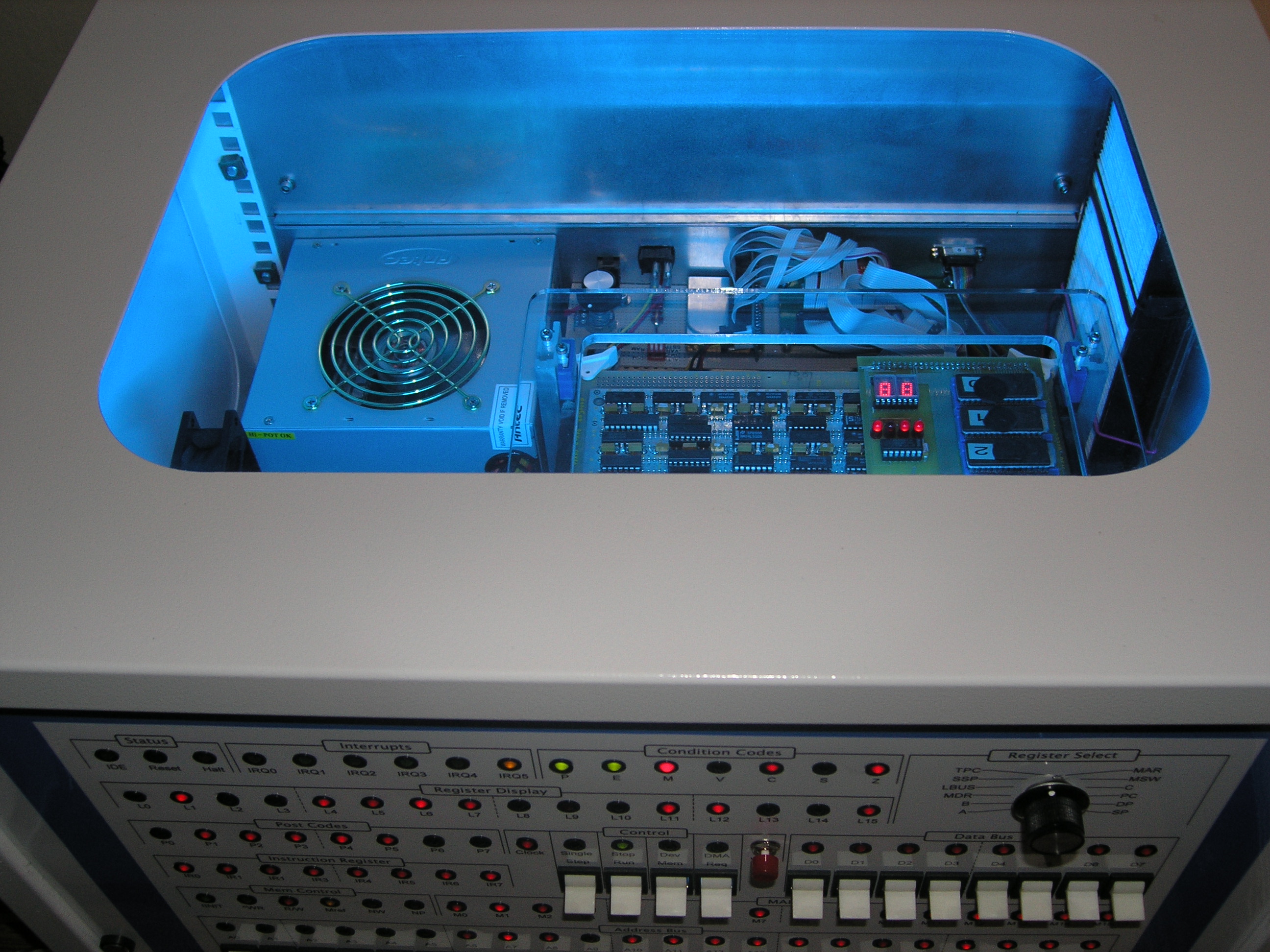 Looking through the top cutout (interior lit by blue fluorescant light wand) |