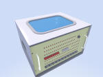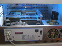 Shown with the front panel unbolted and pulled down. Note cooling fan on left and air filter on right. |